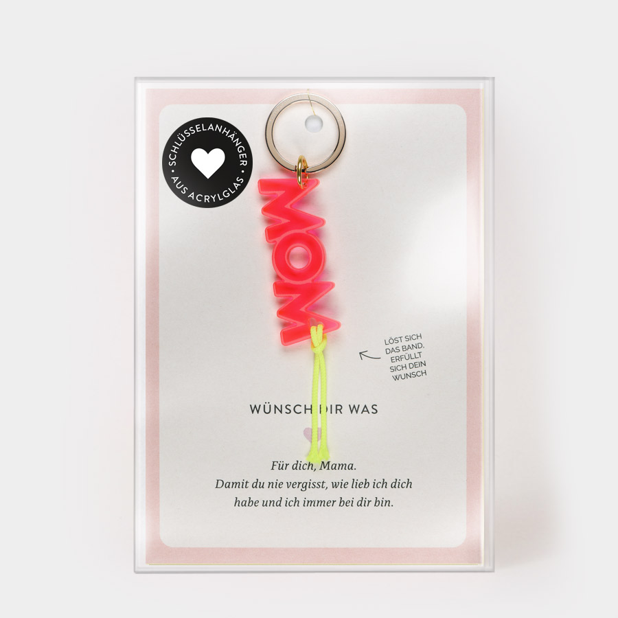 Dein persönlicher Glücksbringer: Schlüsselanhänger aus Acrylglas mit Wunschband. Löst sich das Band, geht der Wunsch in Erfüllung.