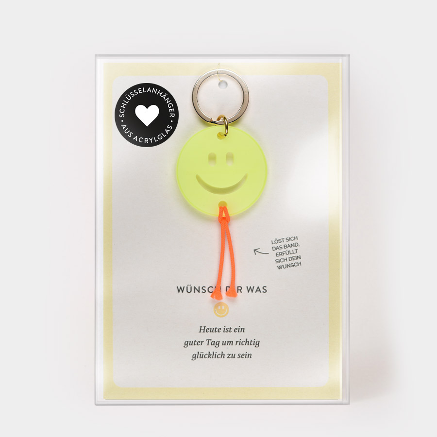 Dein persönlicher Glücksbringer: Schlüsselanhänger aus Acrylglas mit Wunschband. Löst sich das Band, geht der Wunsch in Erfüllung.